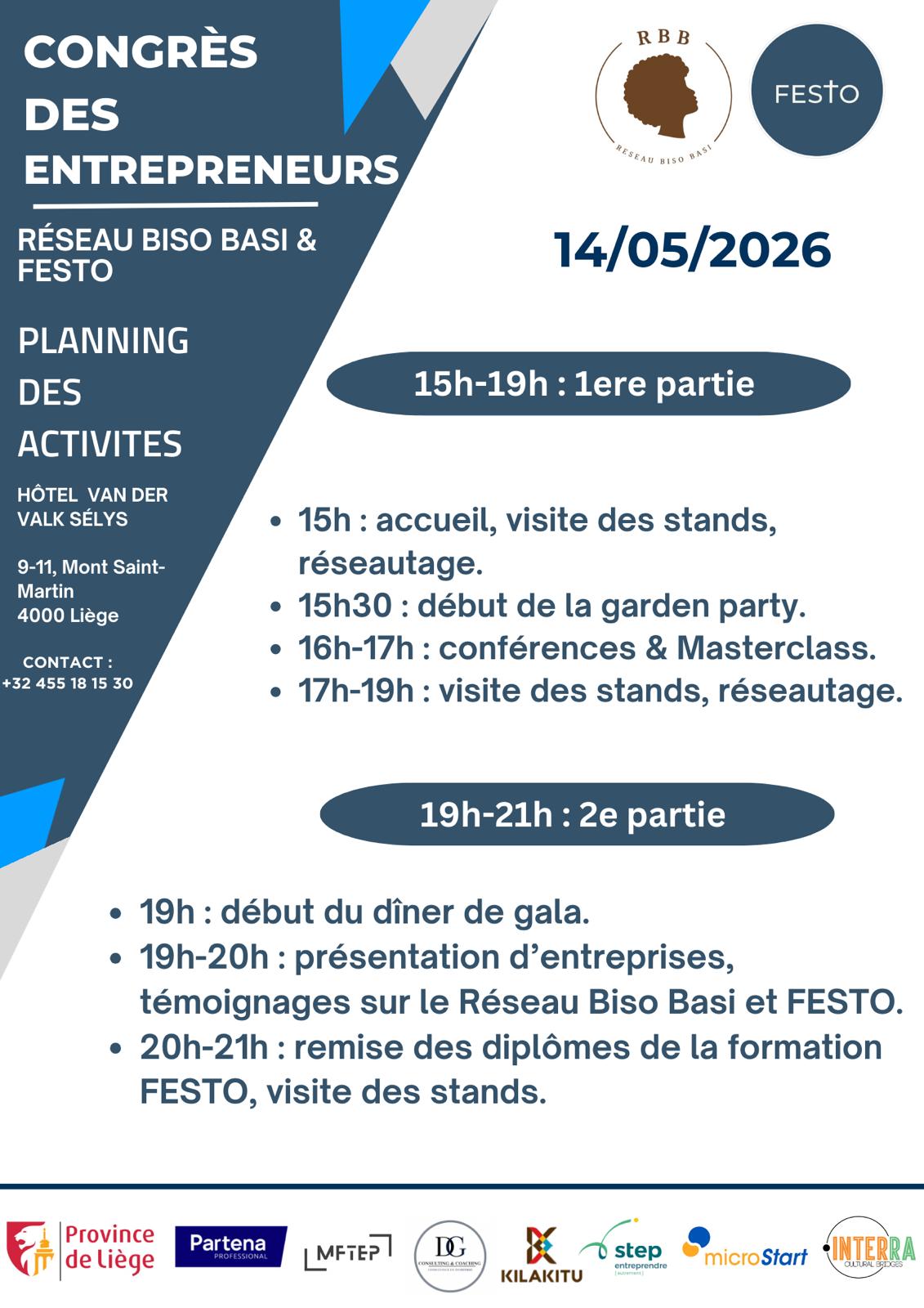 Que ce soit le Congrès des entrepreneurs (CDE), le Festival Biso Basi (FBB), une Info-session, une Master Class (MC), un Atelier Bien-Etre (ABE), un Workshop pour développer vos projets, du Réseautage (Networking), … découvrez nos activités …